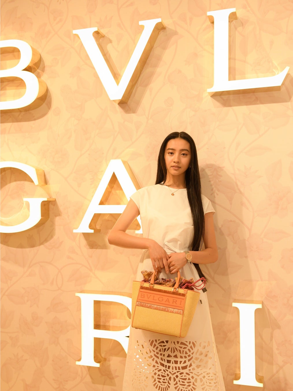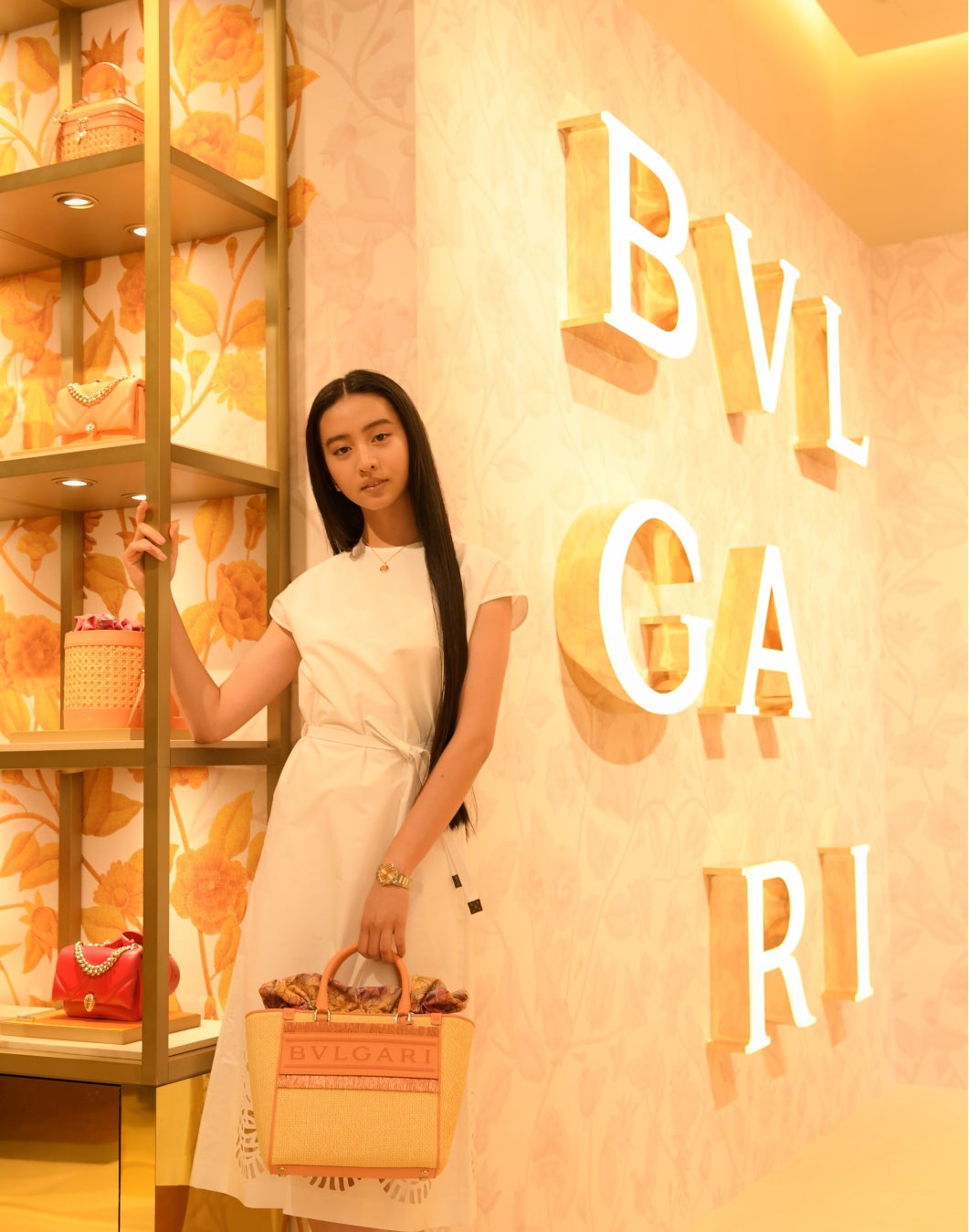 Kōki,は、サマーリゾートからインスパイアをうけたブルガリ2022年リゾートコレクションのアイテムをエレガントに纏い、ポップアップストアの温かな雰囲気を楽しみました。