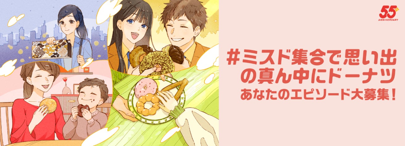 ミスド集合した思い出のエピソードを大募集するキャンペーンを展開特賞エピソードはワンカットアニメーションに!