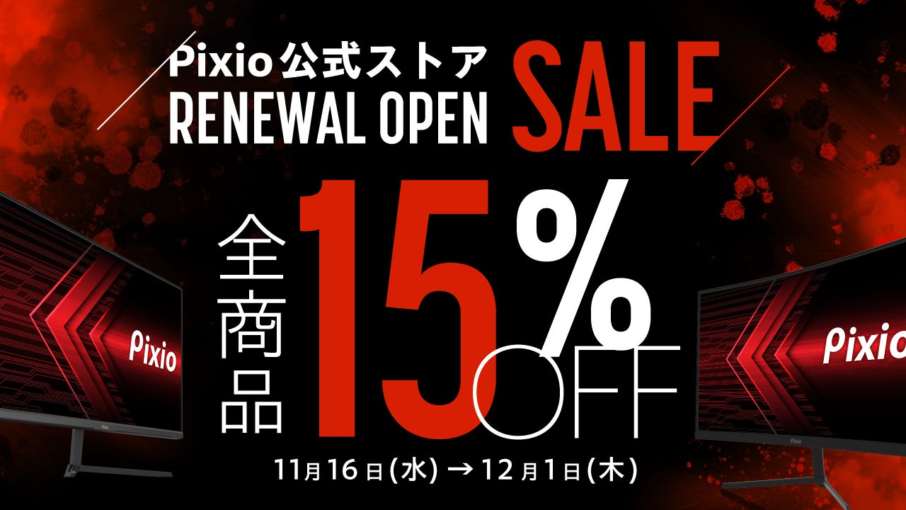 Pixio公式ストアの全商品を対象に定価より15%OFFで販売します。