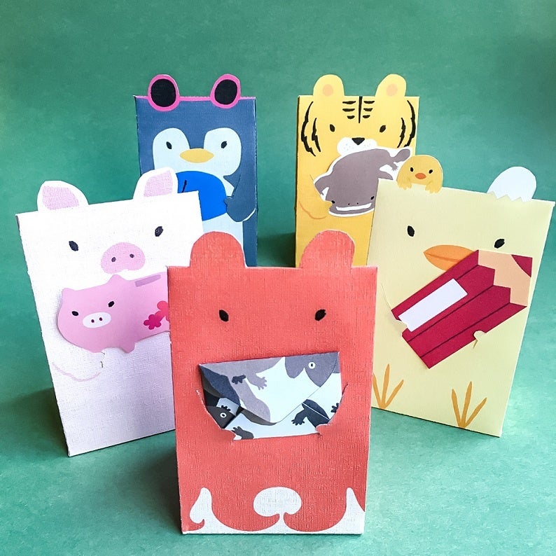 小さなお菓子などにひと言添えて贈る、カード付きペーパーバッグ。