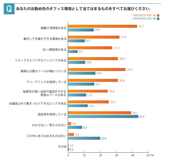 約1,000名のワーカー対象「心理的安全性の実態調査」結果発表フリーアドレスが心理的安全性で固定席を上回る「心理的安全性」を高めるカギは “ワークプレイス環境の充実”