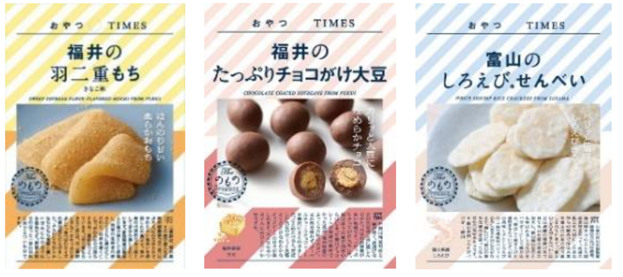 「のもの」で人気の“おやつTIMES”シリーズより、北陸エリアの3商品を両店頭で販売します。