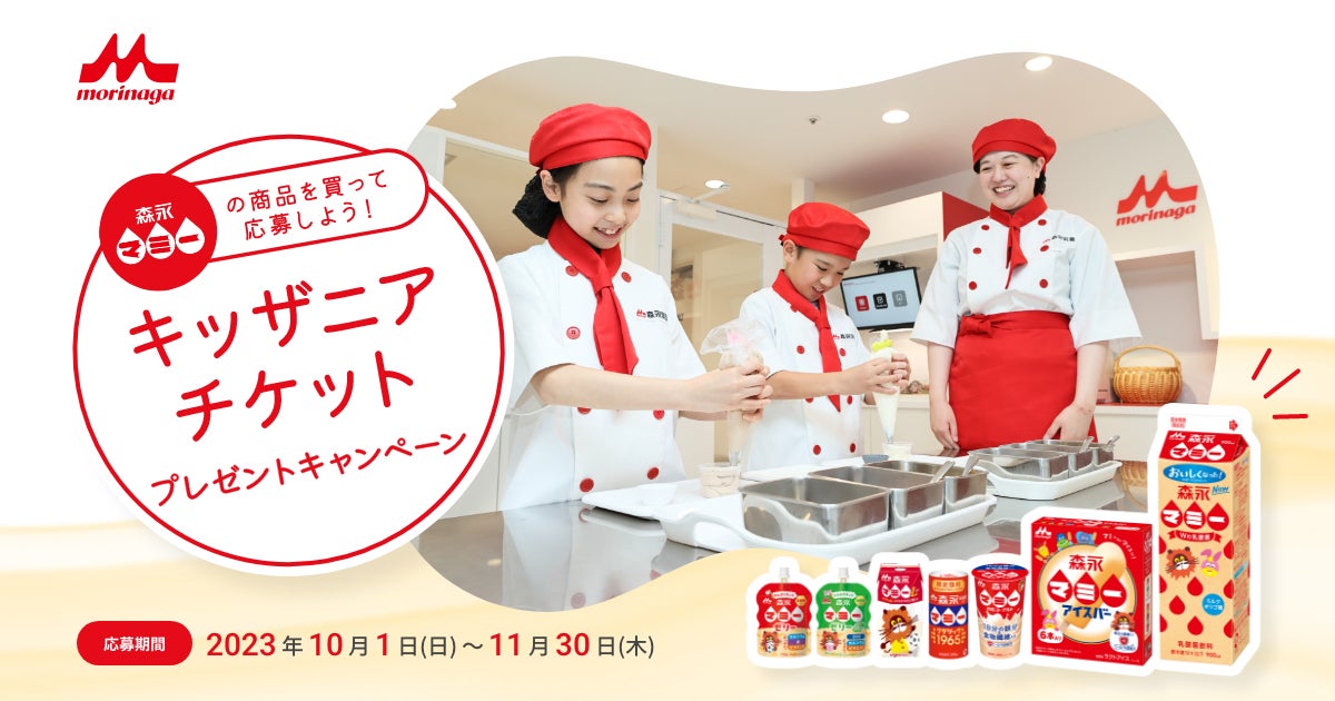 森永マミー新商品発売およびリニューアルに伴い、10月1日(日)~11月30日(木)の期間中、「森永マミー」商品690円(税込)以上のレシートで応募頂いた方の中から、抽選で300組600名様にキッザニアチケットが当たるキャンペーンを実施します。