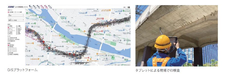 京王電鉄では、鉄道事業における構造物の機能を維持、長寿命化を図るため、地図上の様々な情報に位置情報を持たせて可視化し、迅速な判断や高度な分析を可能とするGISプラットフォーム(K-PaS:KEIO Platform and Systems)の開発を行い、2023年4月より運用を開始しています。