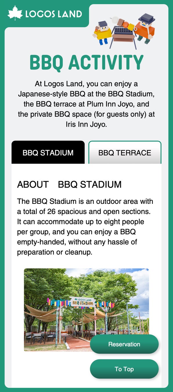 This enhancement enables overseas customers, including inbound foreign tourists, to more smoothly access facility information, make lodging and BBQ reservations, and view access guides.