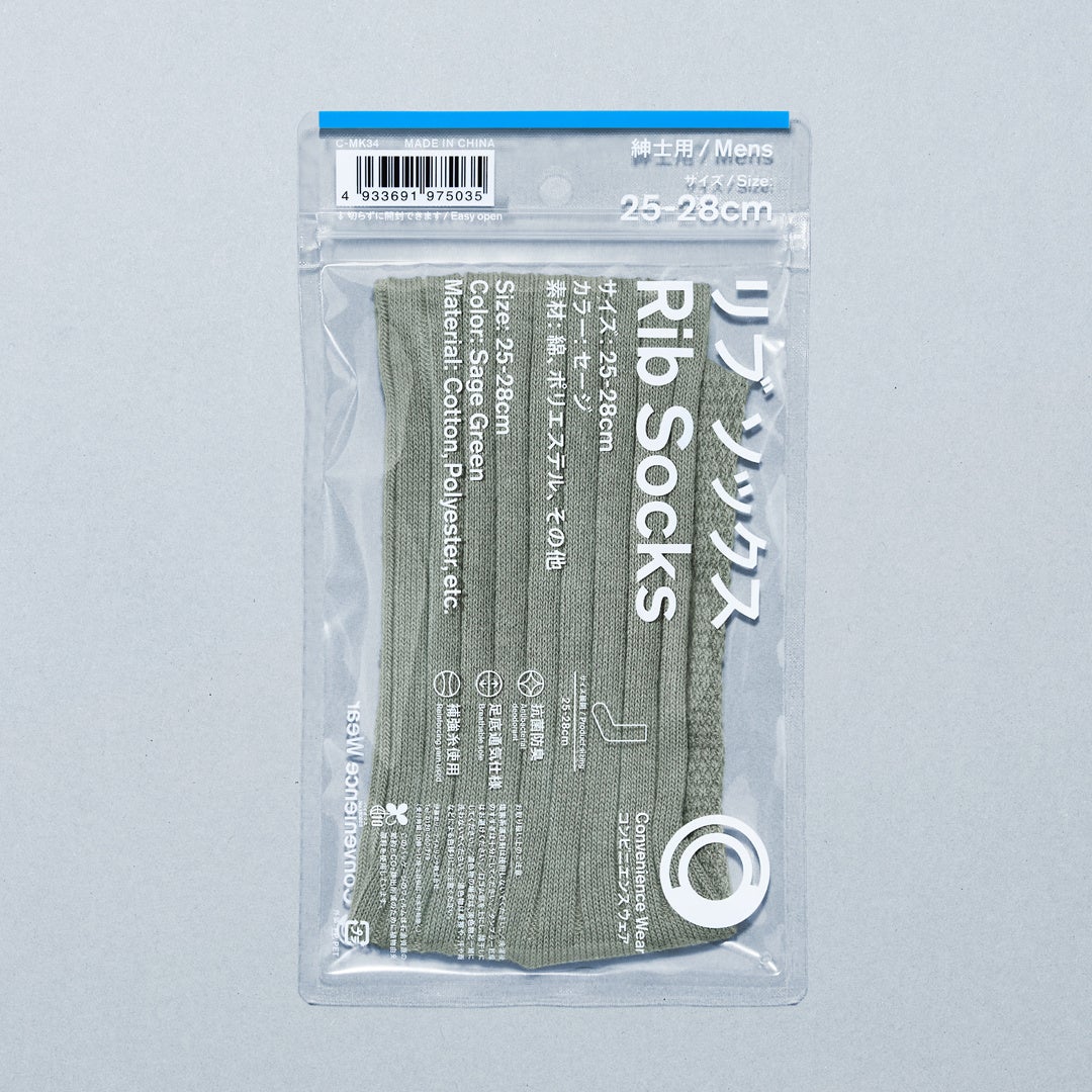 【内容】紳士用のリブソックスです。足底は、通気性が良い鹿の子編み仕様で、つま先、かかとには補強糸を使用し、耐久性を高めました。抗菌防臭加工でニオイにくい仕様です。