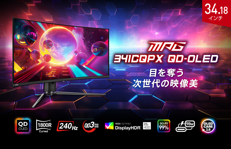 有機EL・量子ドットパネル採用で次世代の映像美を体験UWQHD・240Hz・0.03ms(GTG)のハイスペックゲーミングモニター「MPG 341CQPX QD-OLED」発売