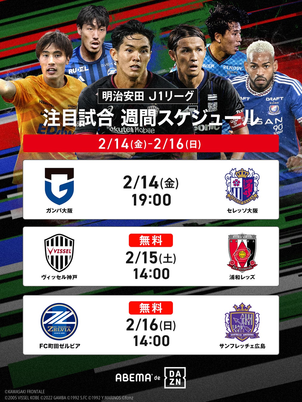 「ABEMA de DAZN」で『ヴィッセル神戸vs浦和レッズ』を2月15日(土)午後2時より無料生中継!2025明治安田J1リーグ開幕節の無料生中継を含む注目試合を公開