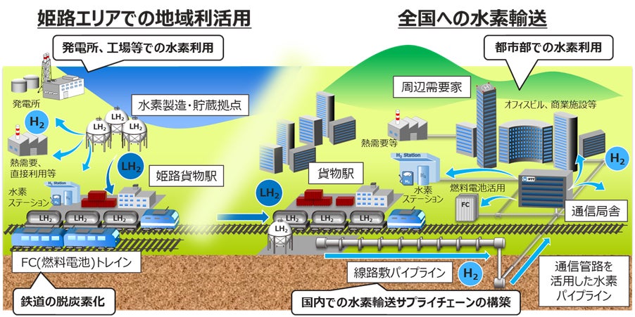 関西電力株式会社(以下、関西電力)、西日本旅客鉄道株式会社(以下、JR西日本)、日本貨物鉄道株式会社(以下、JR貨物)、日本電信電話株式会社(以下、NTT)、NTTアノードエナジー株式会社(以下、NTTアノードエナジー)、パナソニック株式会社(以下、パナソニック)の6社は、兵庫県姫路エリアでのインフラを活用した国内水素輸送・利活用等に関する協業について検討してきました。