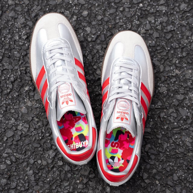 リニューアルオープンに合わせて、渋谷の街が持つエネルギーからインスパイアされたデザインをアイコニックなSAMBA OGとTシャツに落とし込んだ、限定アイテムも登場します。渋谷を象徴するスクランブル交差点から着想を得て、様々な人々が行きかうさまが描かれたオリジナルグラフィックが施されています。