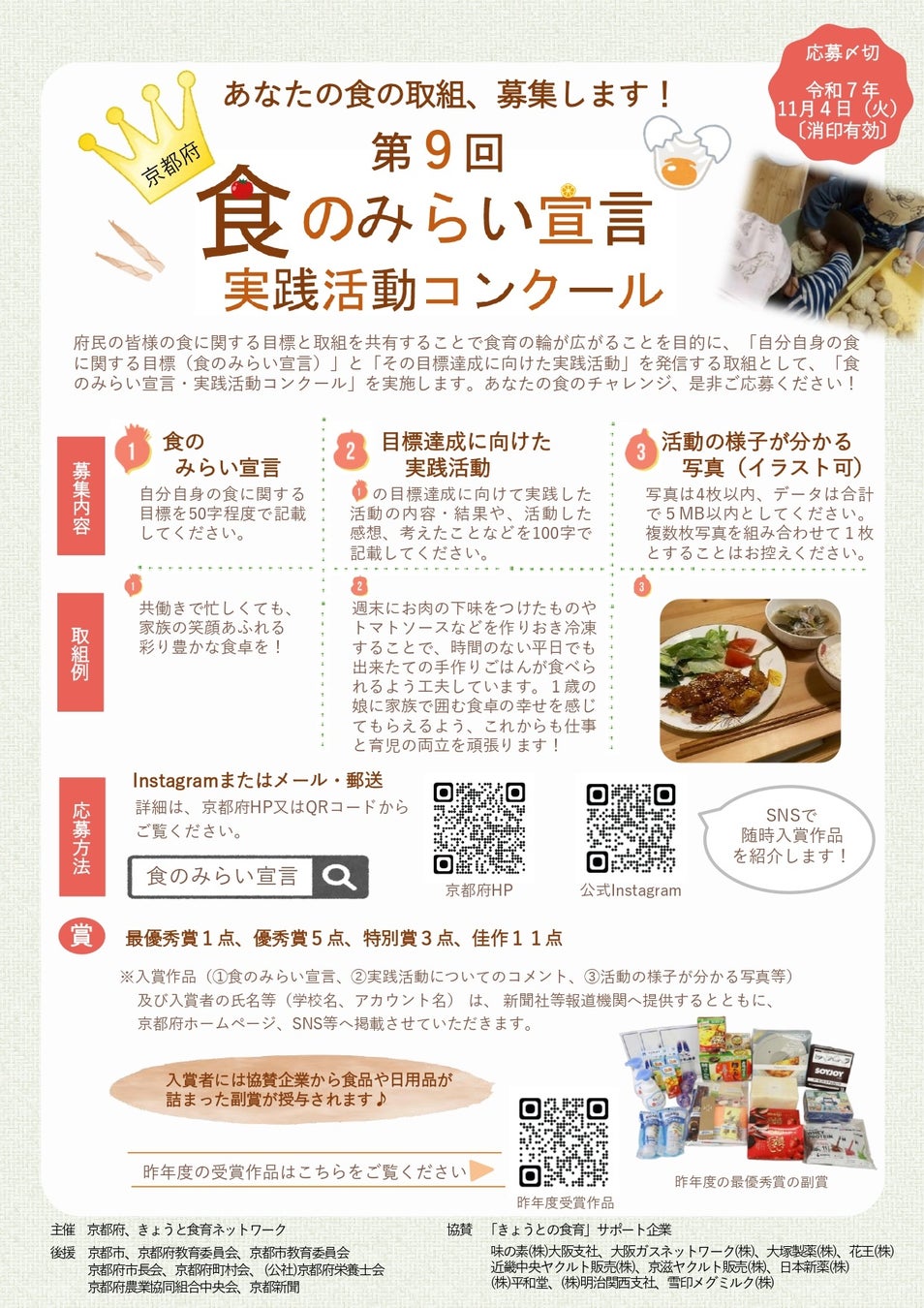 【京都府】あなたの食の取組、募集します! ~「第9回京都府食のみらい宣言・実践活動コンクール」を実施~