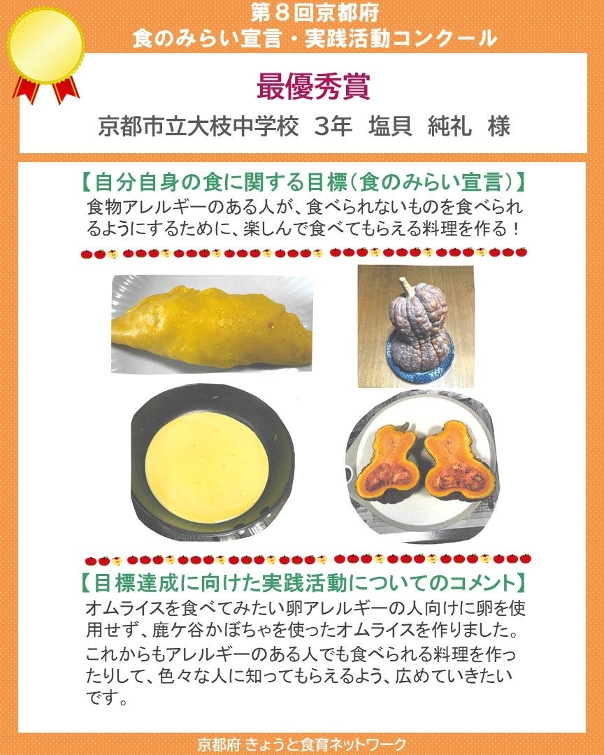 ※京都府HP「『第8回京都府食のみらい宣言・実践活動コンクール』の入賞作品決定!」