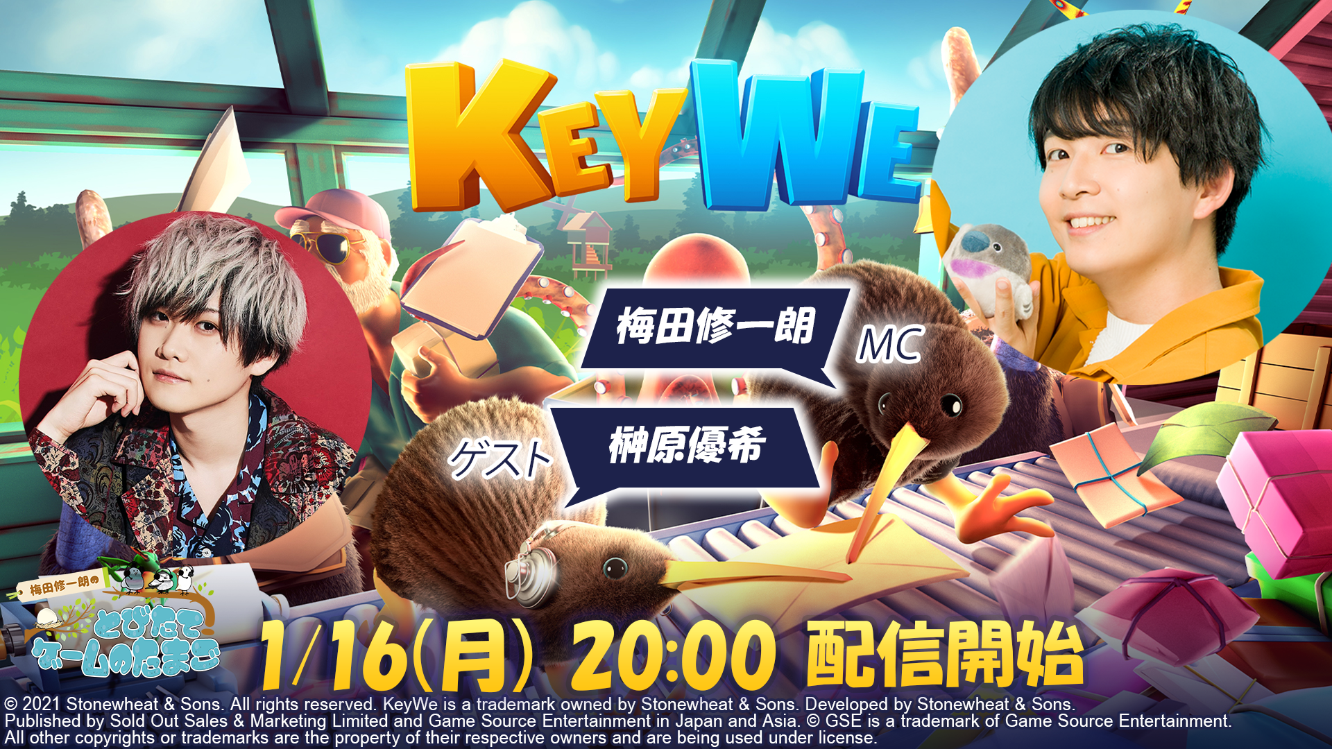 若手声優・梅田修一朗さんがさまざまなゲームに挑戦しながら、ファンとの交流も楽しむ生配信ゲームバラエティー番組『梅田修一朗のとびたて!ゲームのたまご』(省略『とびたま』)は毎月1回、OPENREC.tvにて好評配信中!1月16日(月)20時~生放送の『梅田修一朗のとびたて!ゲームのたまご』第9羽では、梅田さんと仲のいい榊原優希さんをゲストとして迎え、鳥好きのためのパズルゲーム『KeyWe』をプレイ! 配達作業を頑張る二人を見守ろう!