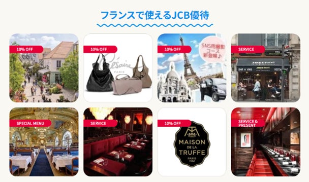 また、フランスで利用できる優待など、JCB カード会員様専用の各種サービスをご用意しております。