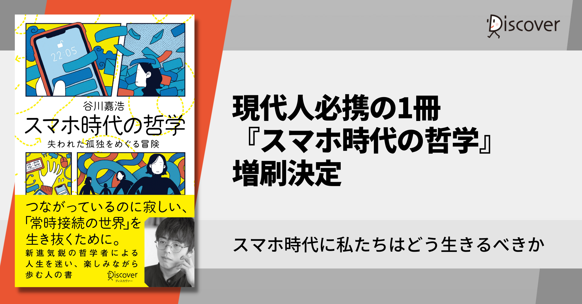 株式会社ディスカヴァー・トゥエンティワン(本社:東京都千代田区、取締役社長:谷口奈緒美)は2022年11月18日刊行の『スマホ時代の哲学 失われた孤独をめぐる冒険』(谷川嘉浩・著)を増刷しました。