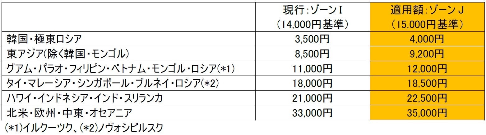 1)2024年6月1日(土)から7月31日(水)までの発券分については、今後の航空燃油価格の水準にかかわらず、上記適用額からの変更は原則行いません。