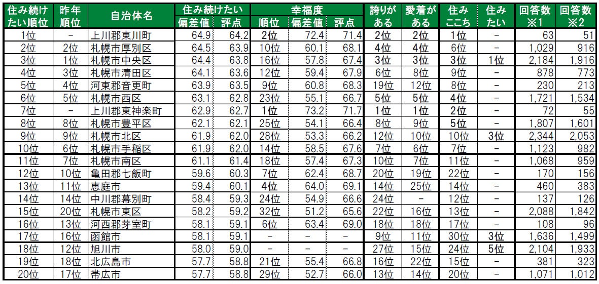いい部屋ネット「街の幸福度 & 住み続けたい街ランキング2023<北海道版>」(街の住みここちランキング特別集計)発表
