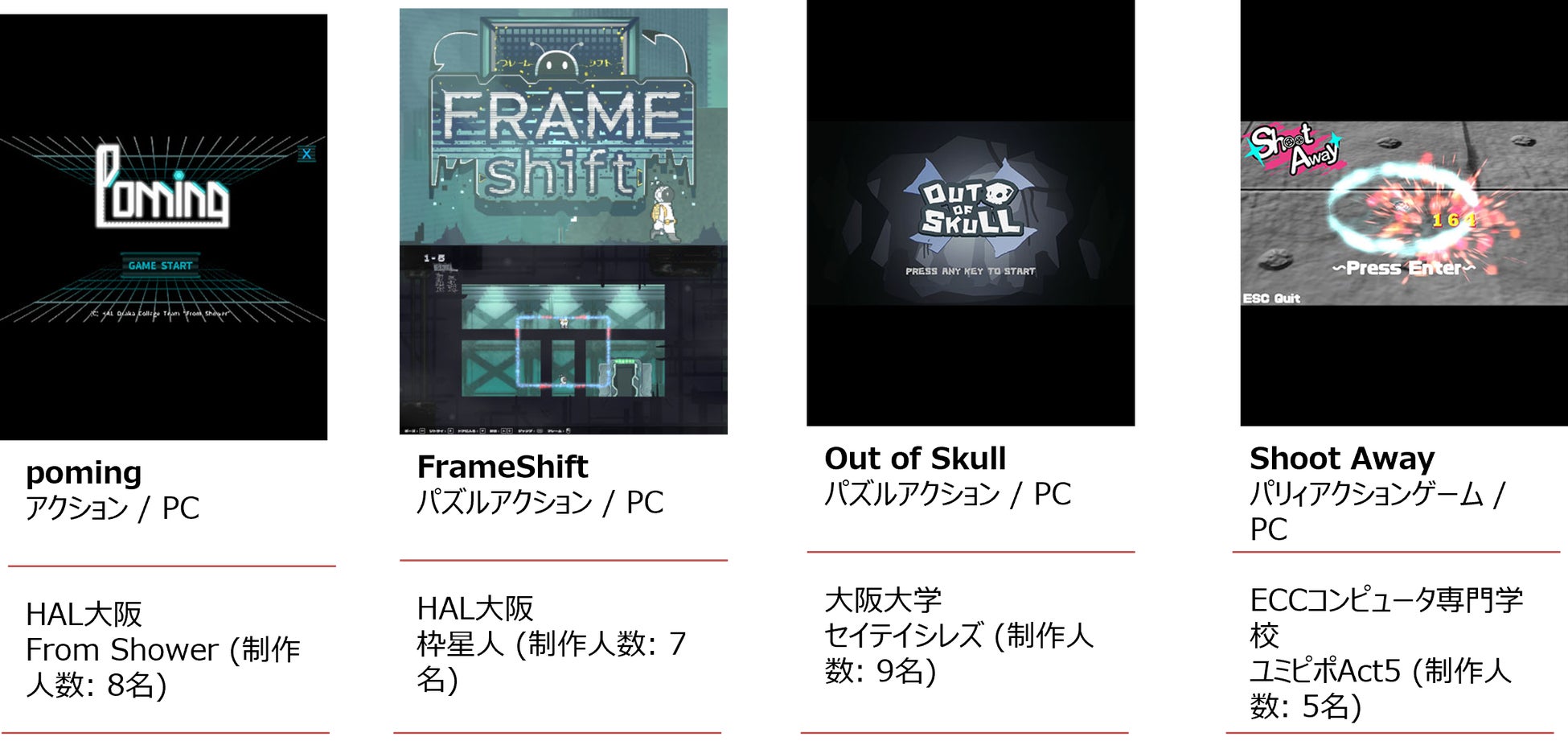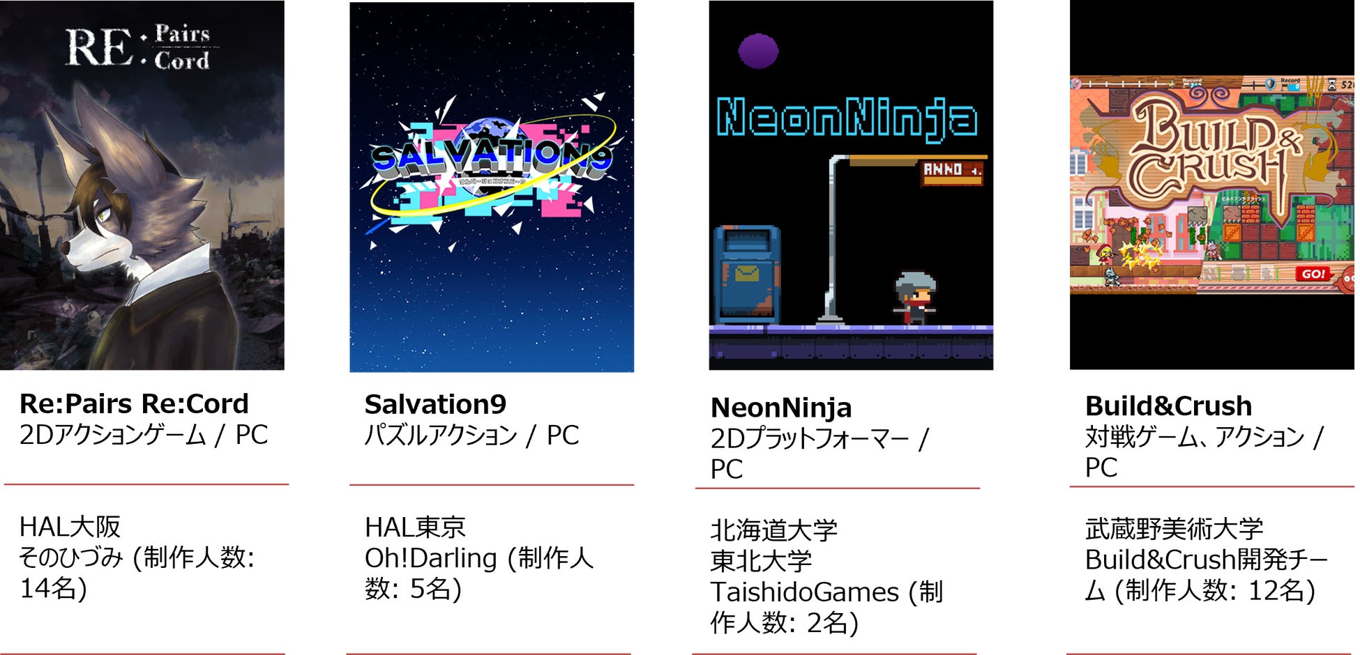 今年もゲームに対して熱い情熱をもつ多くの学校、学生の皆様からエントリーをいただき、昨年の2倍以上のエントリーが集まりました。また、8月上旬に行われた一次審査では、パズルゲームやアクションゲームなど多彩な作品の中からベスト20作品を選出しました。これらの作品は、9月26日(木)から開催される「東京ゲームショウ2024」コナミデジタルエンタテインメントブースで試遊することができます。