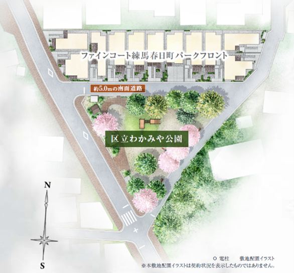 南側に公園が面した立地であり、季節の移ろいや自然の香りなどを日常的に感じられる