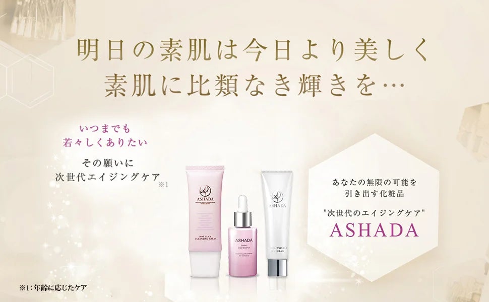 ASHADAシリーズはその眠った「力」を目覚めさせ、解き放つことで、明日も、そして10年後も輝き続ける美しい肌へ生まれ変わってほしい。
