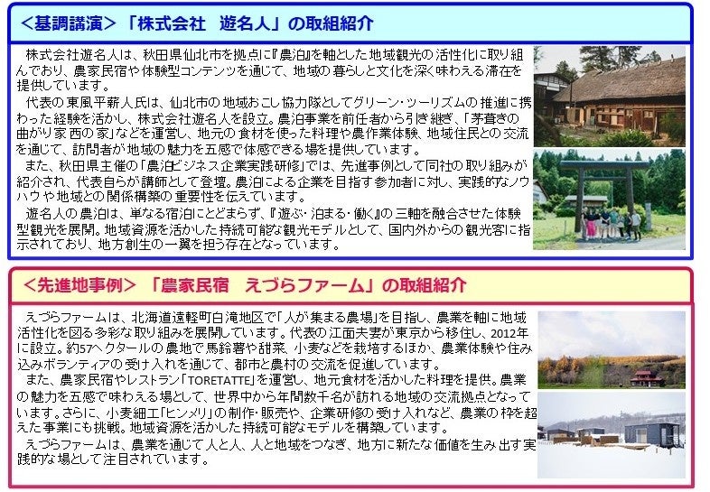 研修会は、会場参加とオンライン参加のハイブリッド形式で実施します。農泊などの農村ツーリズムや、都市と農村の交流に関心のある方なら、どなたでもご参加いただけます。