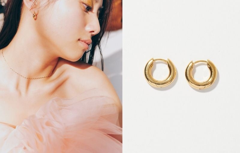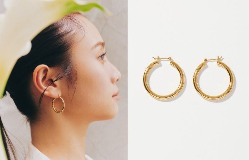 ミニマルなサイズ感のフープピアス。キャッチレスで洗練された構造に仕上げています。