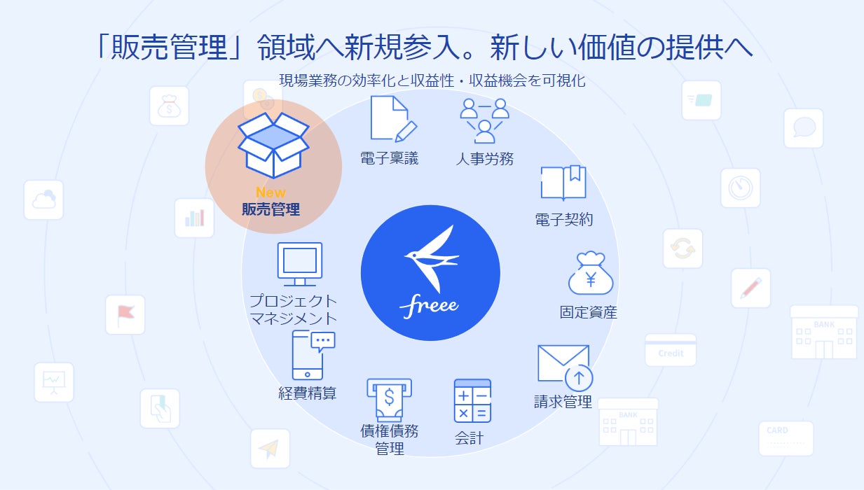freeeが掲げるビジョン「だれもが自由に経営できる統合型経営プラットフォーム。」の実現に向けて、これまでスモールビジネスの課題解決・ビジネス拡大に必要なさまざまな領域へ積極的に参入してきました。freee会計・freee人事労務を中心にあらゆる業務とデータがつながることで、自動化・可視化に加えてスマートで適切な経営アクションが可能となりました。今回、「販売管理」領域に参入することでバックオフィス業務のみならず、現場業務の効率化と収益性・収益機会を可視化してまいります。
