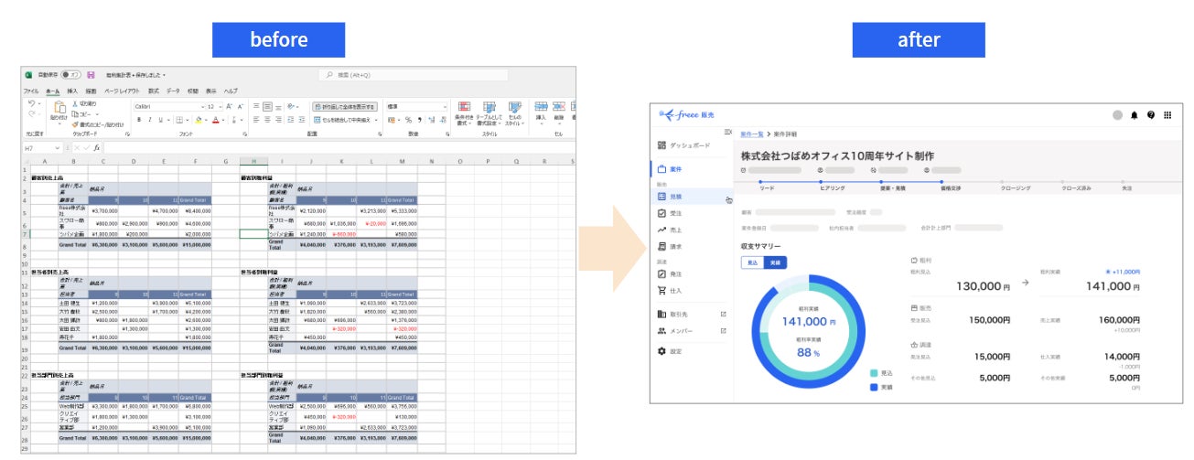 freee販売を通じて、誰でもかんたんに効率的な業務フローを組むことができ、“業務をしていたら自然と経営状況が可視化された”という体験をあらゆる業種の皆様に体感していただき、収益向上に必要な経営判断までをサポートしていきます。
