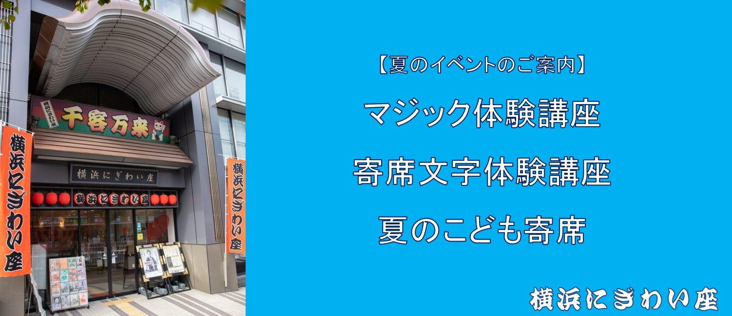 【横浜にぎわい座】夏のイベントのご案内。横浜にぎわい座ならではの体験を。「マジック体験講座」「寄席文字体験講座」「夏のこども寄席」開催!