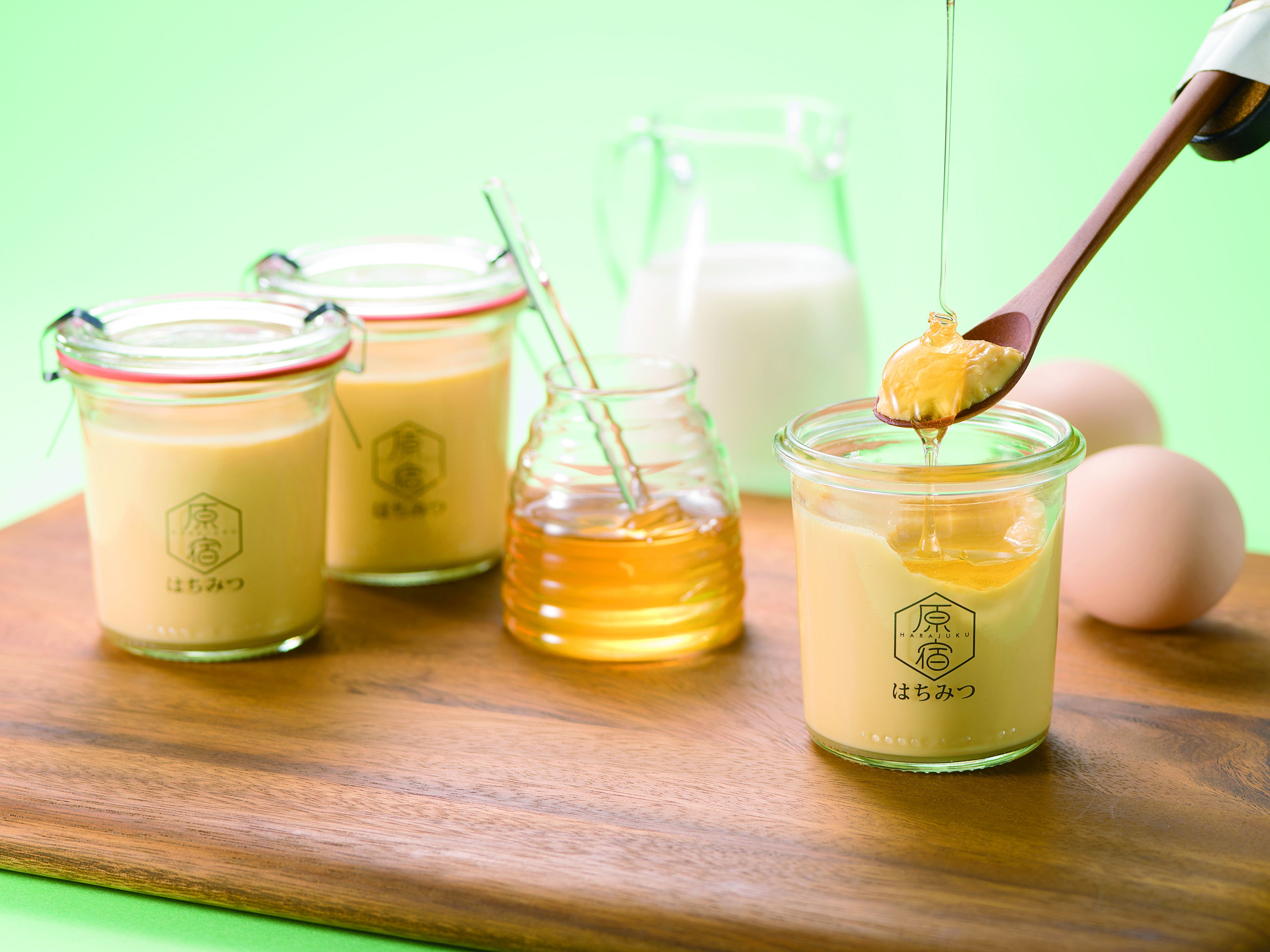 カラメルソースの代わりに、原宿・表参道の「コロンバン」自社ビル屋上で採れた“原宿はちみつ”を使い、“原宿はちみつ”のおいしさを味わうために開発されたカスタードプリン。