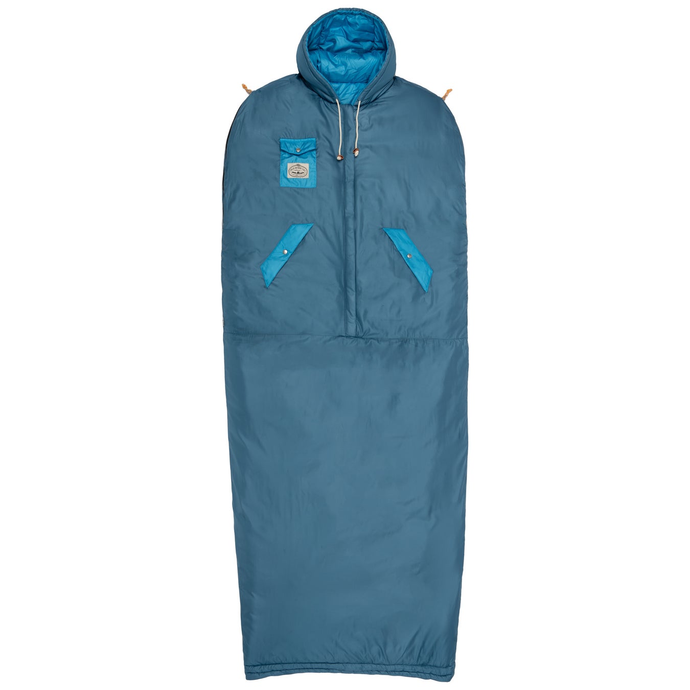 リバーシブルタイプの寝袋。肩部分のファスナーから手を出すことができます。