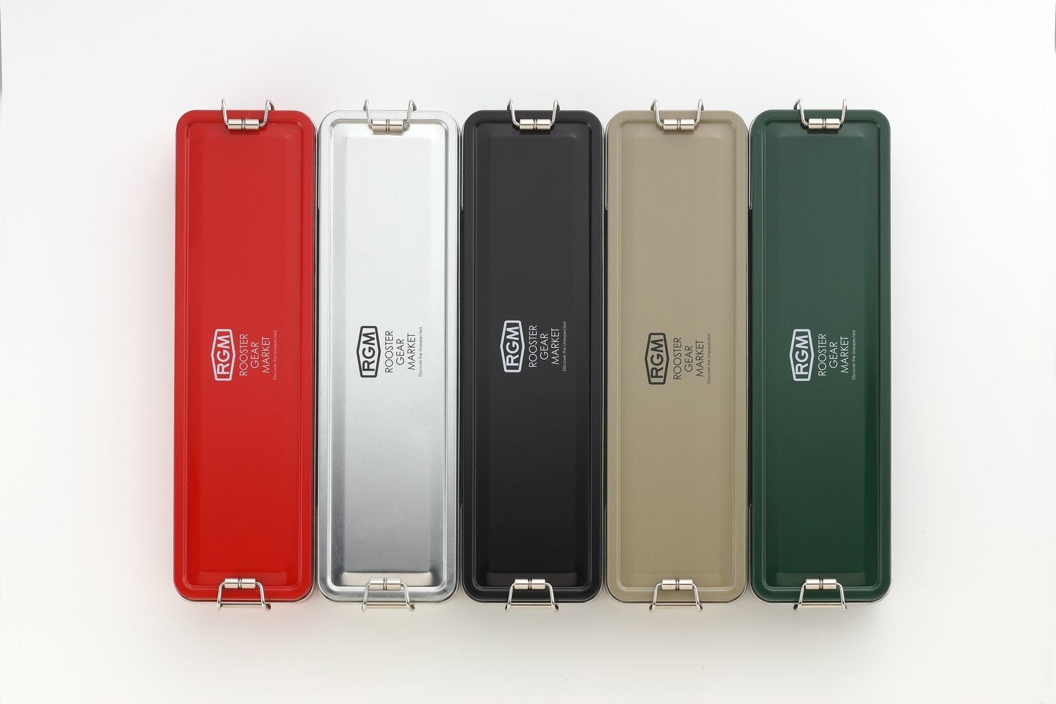 釣り道具の小物収納に便利なブリキのケース。spec.3の釣り竿も収まるサイズ感。
