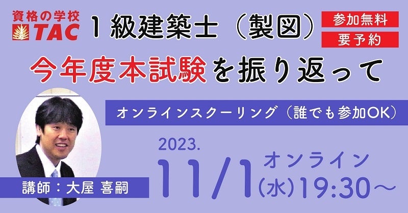 今年度の製図試験の振り返りを行いますので、各自お手元に問題用紙と飲み物をご用意してご参加ください。また、後半はZoomの機能を活用した質疑応答も予定しています。学習上の質問や来年に向けてなど、講師がいくつかピックアップしてお答えいたしますので、奮ってご参加ください。