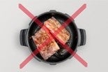 ・鶏肉は必ず内なべの底に均等に入れて下さい。冷凍サイズが大きく斜めに入る場合は袋の上から流水で流し、なべ底に入るサイズに小さくしてから入れて下さい。