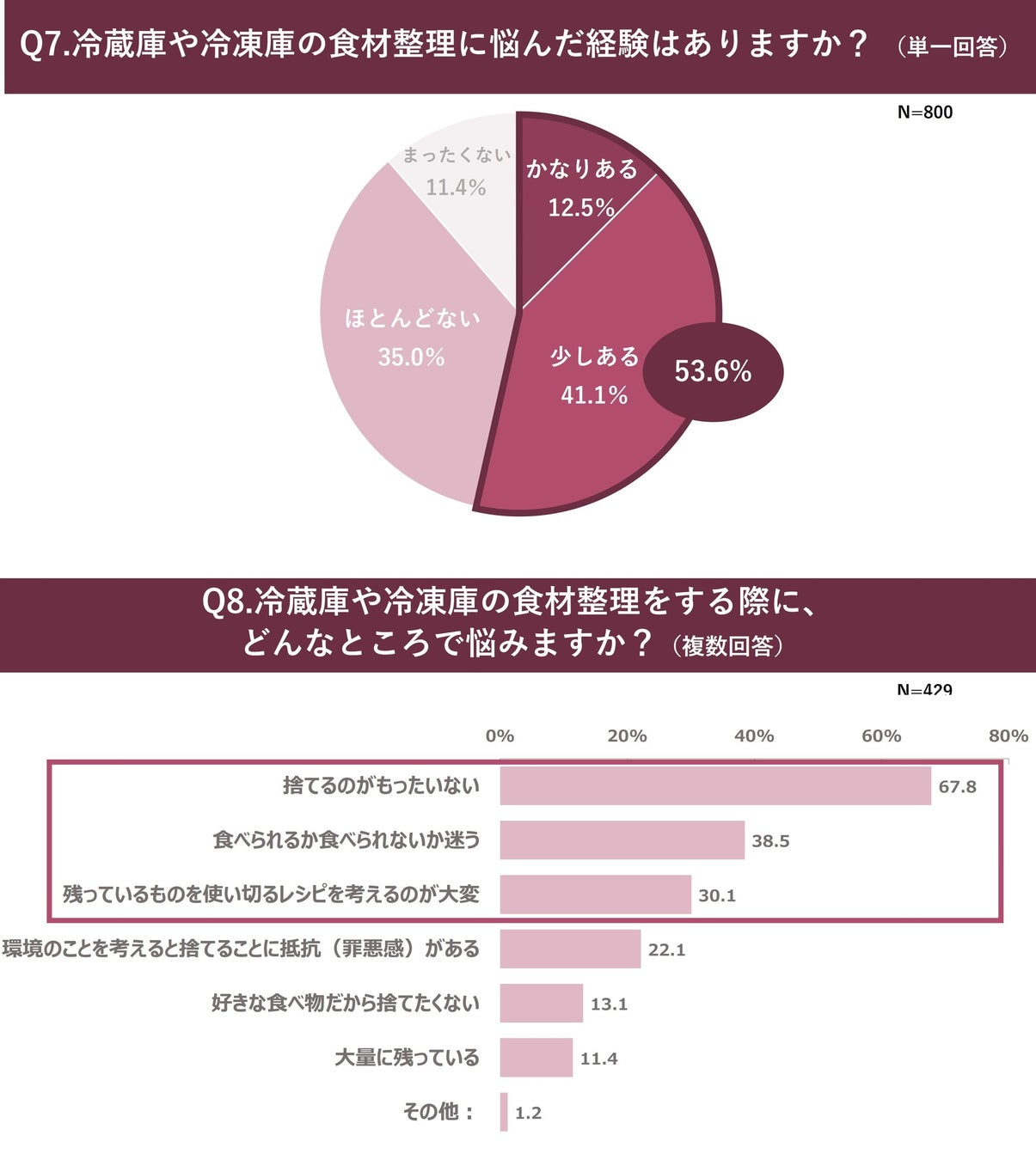 《半数以上の人が、冷蔵庫の食材整理に悩んだ経験があると回答。悩みのタネは「食材を捨てるのがもったいない」が最多に》