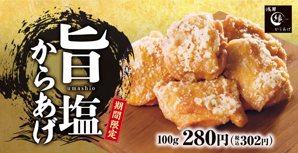 とんかつ専⾨店「かつや」などを展開するアークランドサービスホールディングス株式会社の⼦会社、エバーアクション株式会社(本社:東京都千代⽥区/代表:渡部 貴)は、2024年9月20日(金)より国内の「からあげ縁-YUKARI-」にて「旨塩からあげ」を期間限定で販売開始いたします。