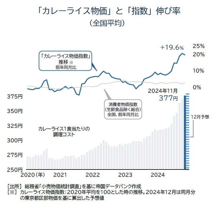 11月の「カレーライス物価」は1食377円、8カ月連続で最高値 前年に比べ2割高