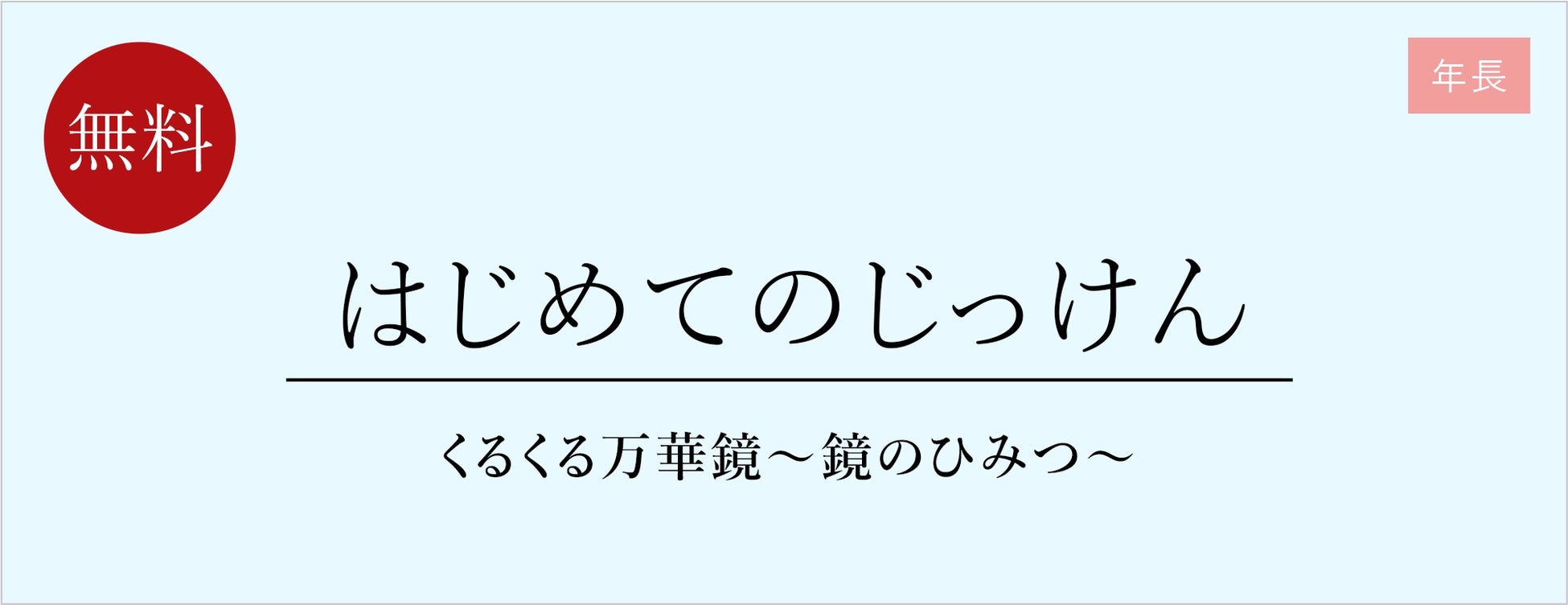 はじめてのじっけんは、年長のお子さまを対象とした「身近な不思議を楽しく学ぶ」体験型の理科実験イベントです。今回は、「くるくる万華鏡~鏡のひみつ~」をテーマに、光の反射を利用した「万華鏡」を作ります。筒の中で向かい合わせになった鏡がつくりだす世界を体験し、「なぜそうなるのか」を考え、好奇心を育てます。