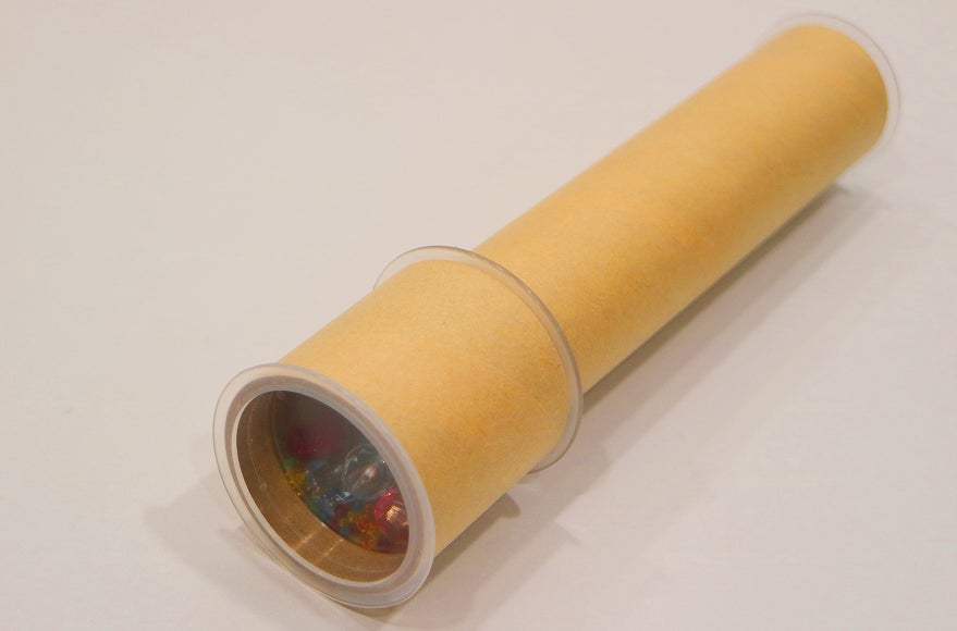 今回、ご自分で作った万華鏡をお持ち帰りいただけます。この万華鏡は、中身を入れ替えて楽しむことができます。ビーズのほかに何を入れたらきれいに見えるか考え、試してみましょう。おうちの方と一緒に、楽しみながら自分だけの万華鏡を作ってみてください。