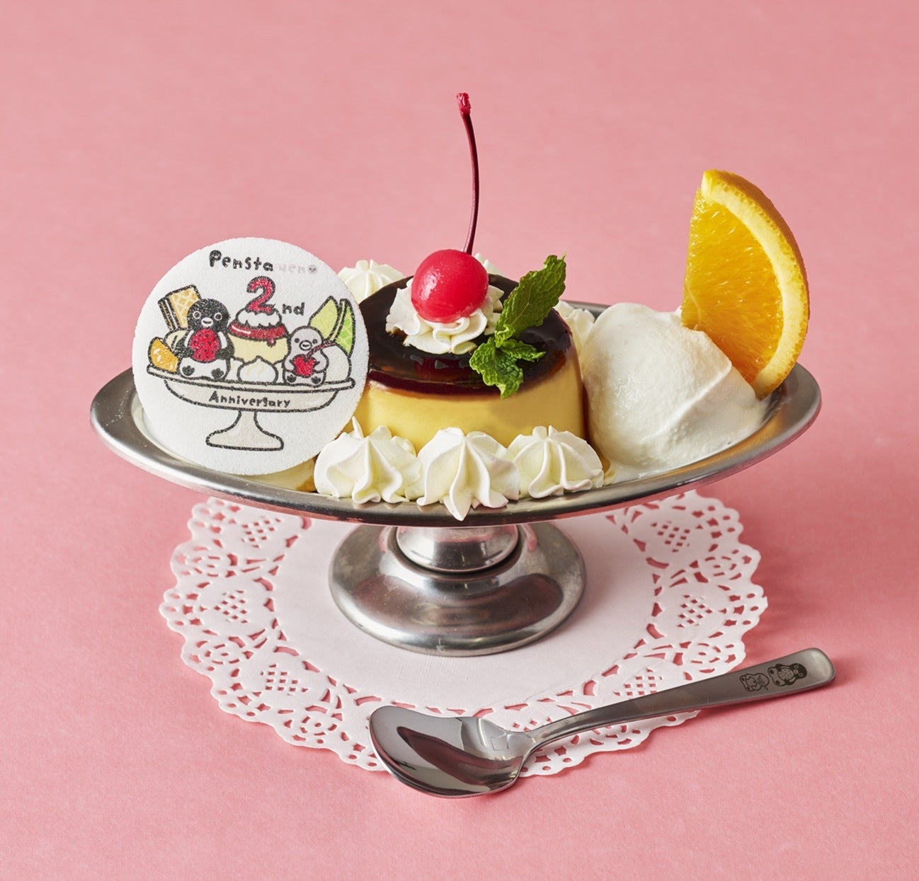 2025年12月16日(火)から、2周年記念イラストを再現したプリンアラモードを期間限定で販売いたします。思わず写真に撮りたくなるかわいいデザインに仕上げました。またSuicaのペンギンのイラストが描かれたスーベニアのスプーン付きセットは必見!ご自宅でも使いやすいスプーンをお土産にいかがですか?