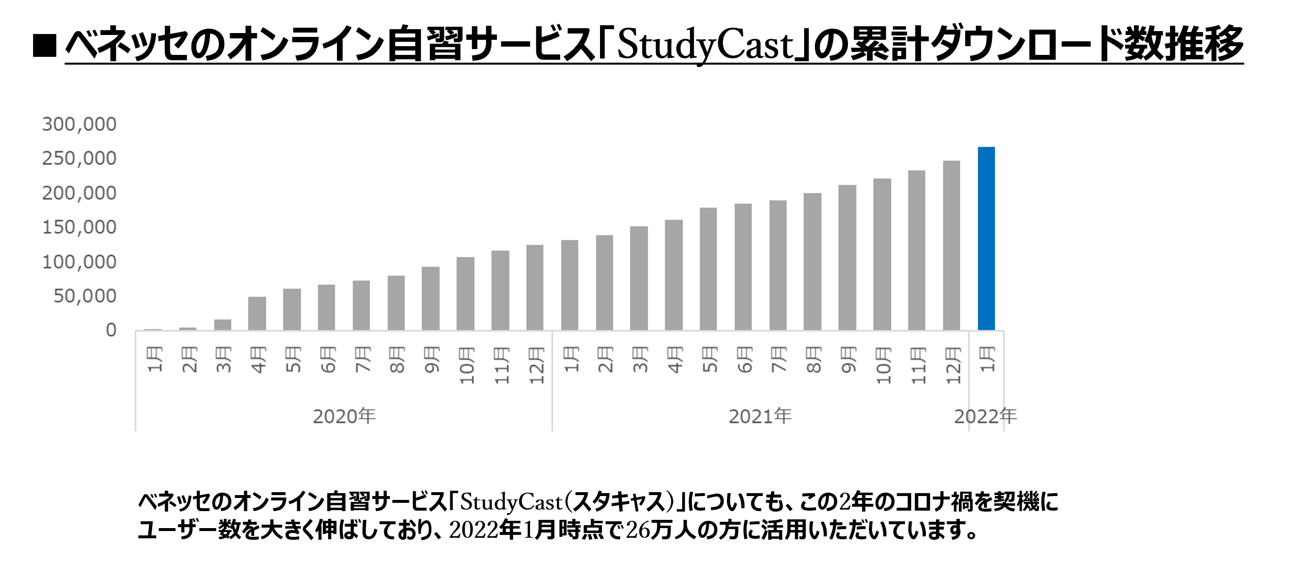 ■ベネッセのオンライン自習サービス「StudyCast」の累計ダウンロード数推移