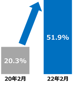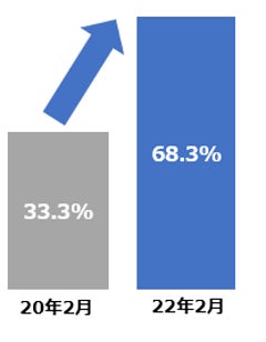 新型コロナウイルス感染拡大前後と比べ、で利用率に約2.5倍の差。
