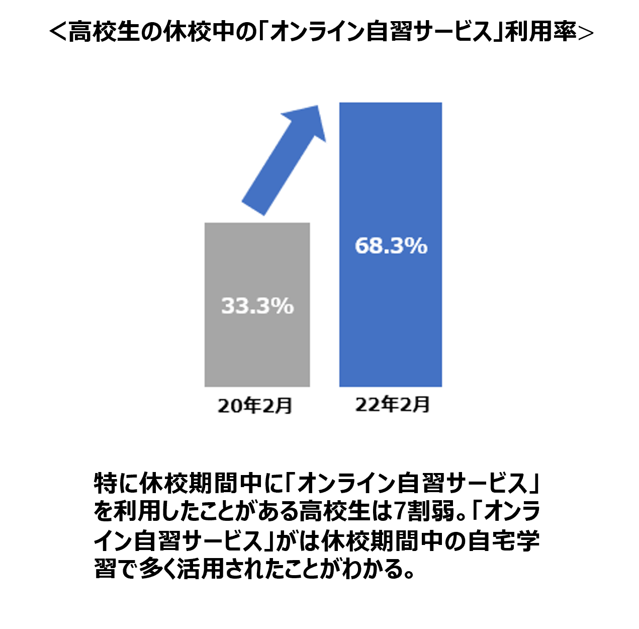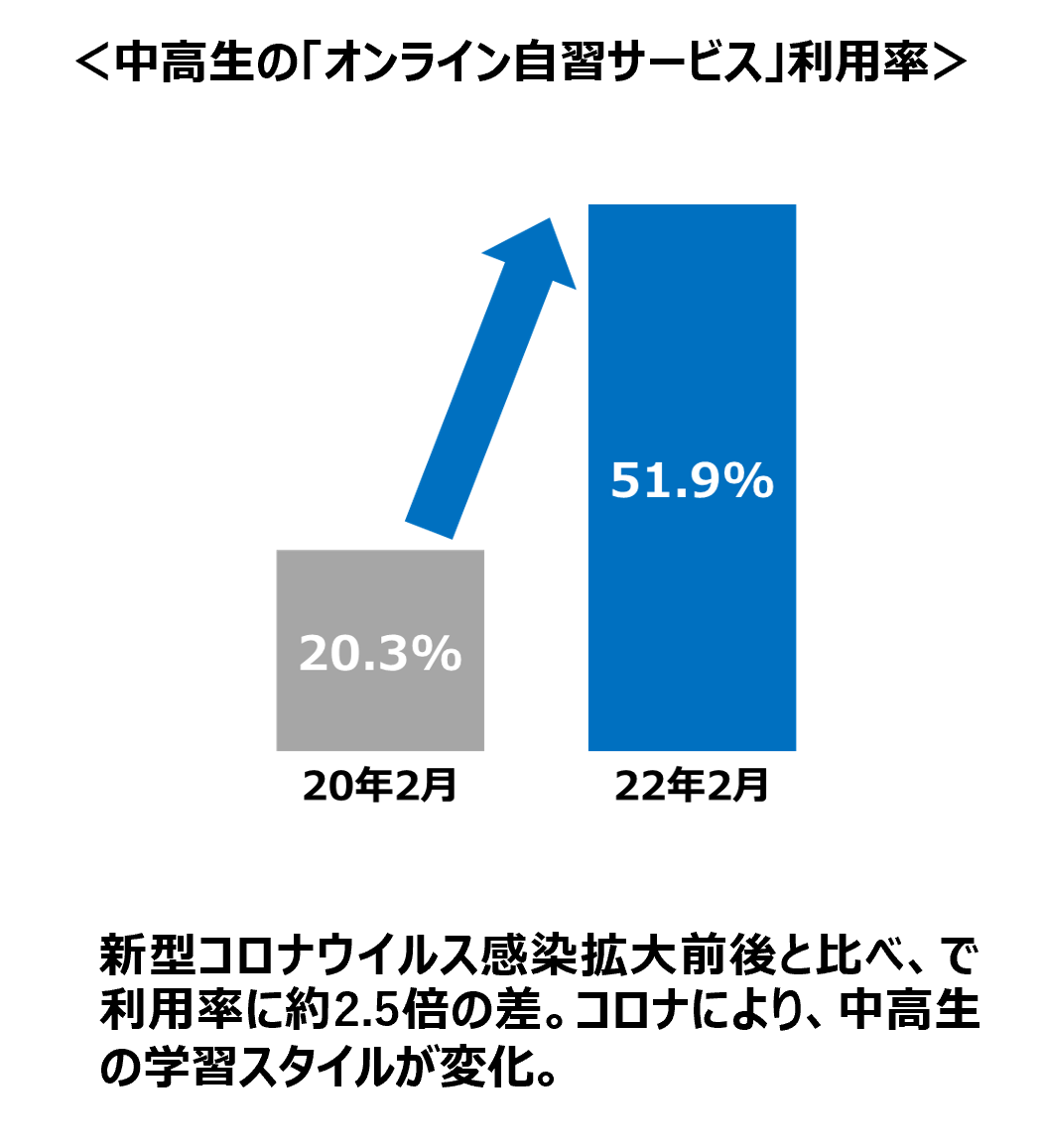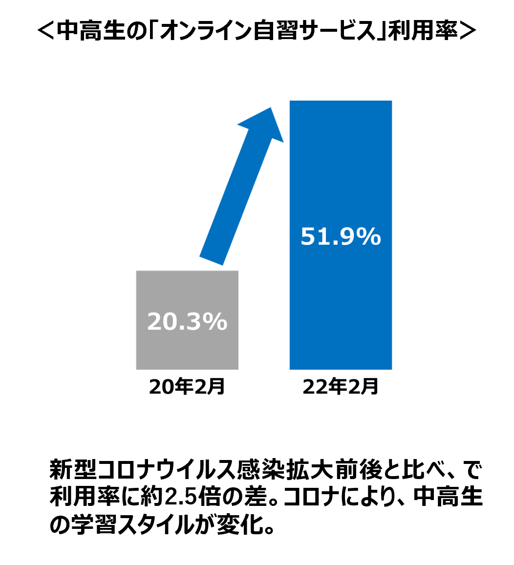 ■中高生の「オンライン自習」利用者が20.3%から2年間で51.9%に急増 ■休校期間中には、高校生の68%が「オンライン自習サービス」を利用