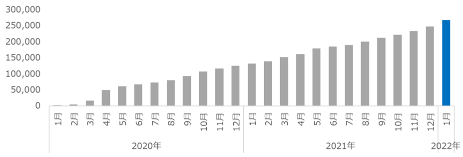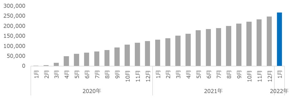 ユーザー数を大きく伸ばしており、2022年1月時点で26万人の方に活用いただいています。
