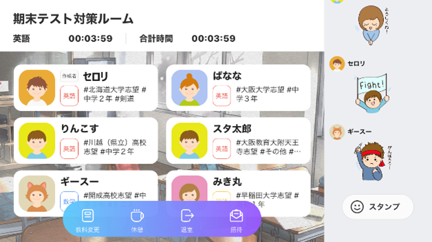 ・LINEの通話だと友達と一緒にYouTubeを見てしまったりしていたから、こう言うアプリを使えばそんなことはなくなるかな、というのと、学習時間がちゃんとわかるので、「あと何分したら休憩」と時間を区切って学習できそうだから。