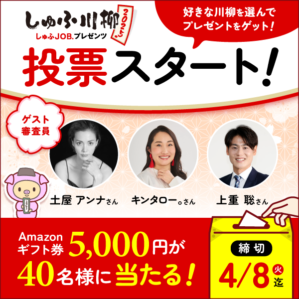 「しゅふ川柳 2025」4,525句から、ノミネート作品45句が決定!4/8(火)まで一般投票受付中