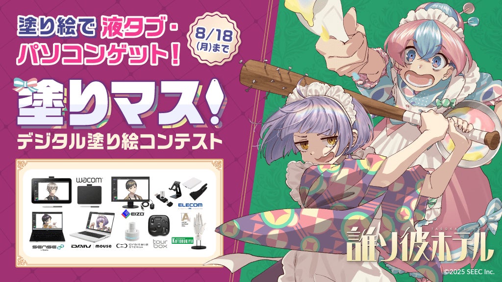 セルシスは、7月29日(火)より株式会社アイビスと共催する、第三十三回デジタル塗り絵コンテスト「塗りマス!」で、「誰ソ彼ホテル」シリーズとコラボレーションします。