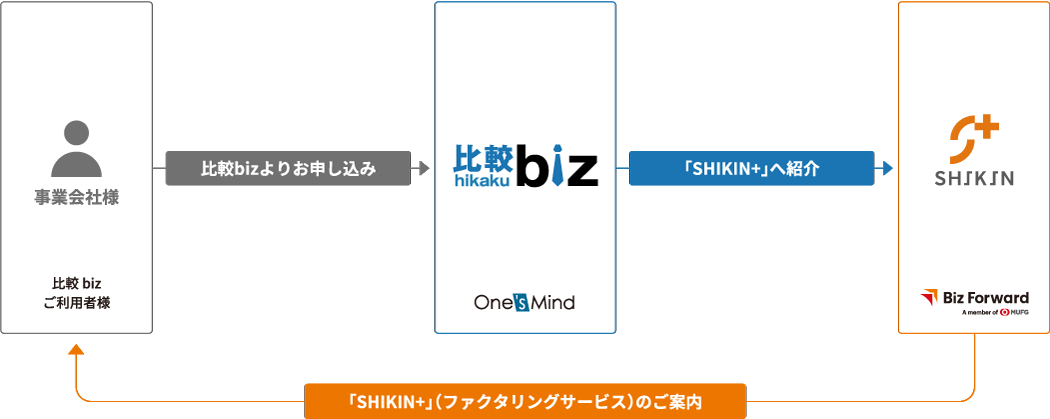 本契約はワンズマインドと当社の中小企業支援への想いが一致して実現しました。ワンズマインドは、ビジネスマッチングサービス『比較ビズ』を提供する中で“低価格でスタートできる高品質な法人営業支援サービスにより、企業に負担をかけずに高い営業力を提供したい”との考えを持っています。また、当社は、中小企業向けオンライン型ファクタリングサービス『SHIKIN+』の提供を通じて “中小企業に向けたファイナンスサービスにより企業の成長を支援し、ひいては日本の成長が持続していく社会を創りたい”という考えのもと、事業を進めています。本契約締結により、ワンズマインドは利用者に対するサービス拡充により、中小企業の支援体制の強化を図ることができ、一方、当社は『比較ビズ』の利用者に『SHIKIN+』の提供が可能になり、顧客層の拡大が見込めます。