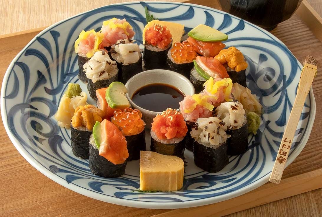 天ぷらや、つまみとして楽しめるあてまき(寿司)が、卓上設置の蛇口から好きなだけ注げる60分無料・飲み放題の焼酎で存分に楽しめます。また、京都ポルタ店限定でこだわりのランチメニューを提供します。