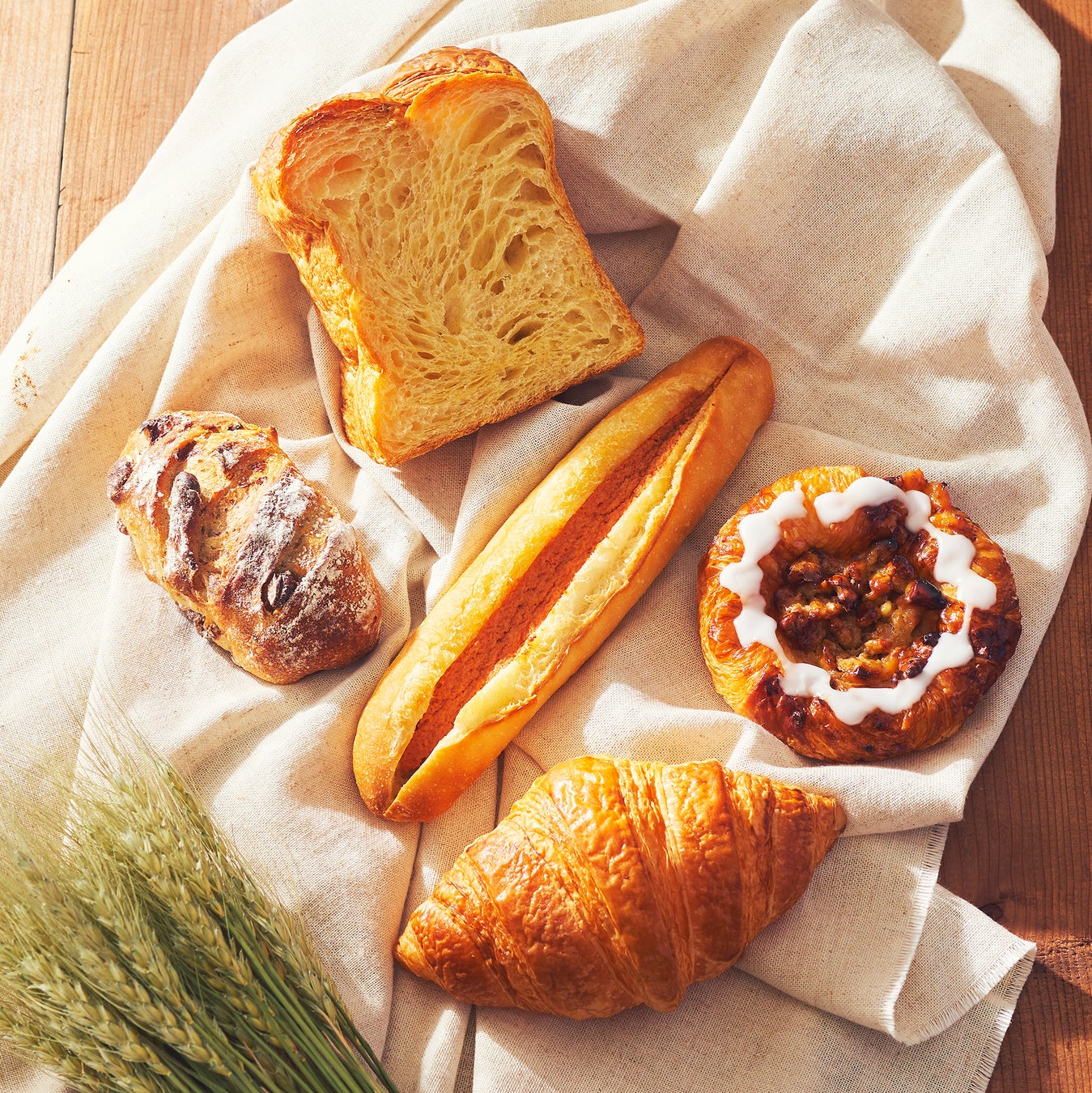 ・クロワッサン ・クルミデニッシュ ・デニッシュ食パン(1/4) ・めんたいフランス ・マカダミアレーズン